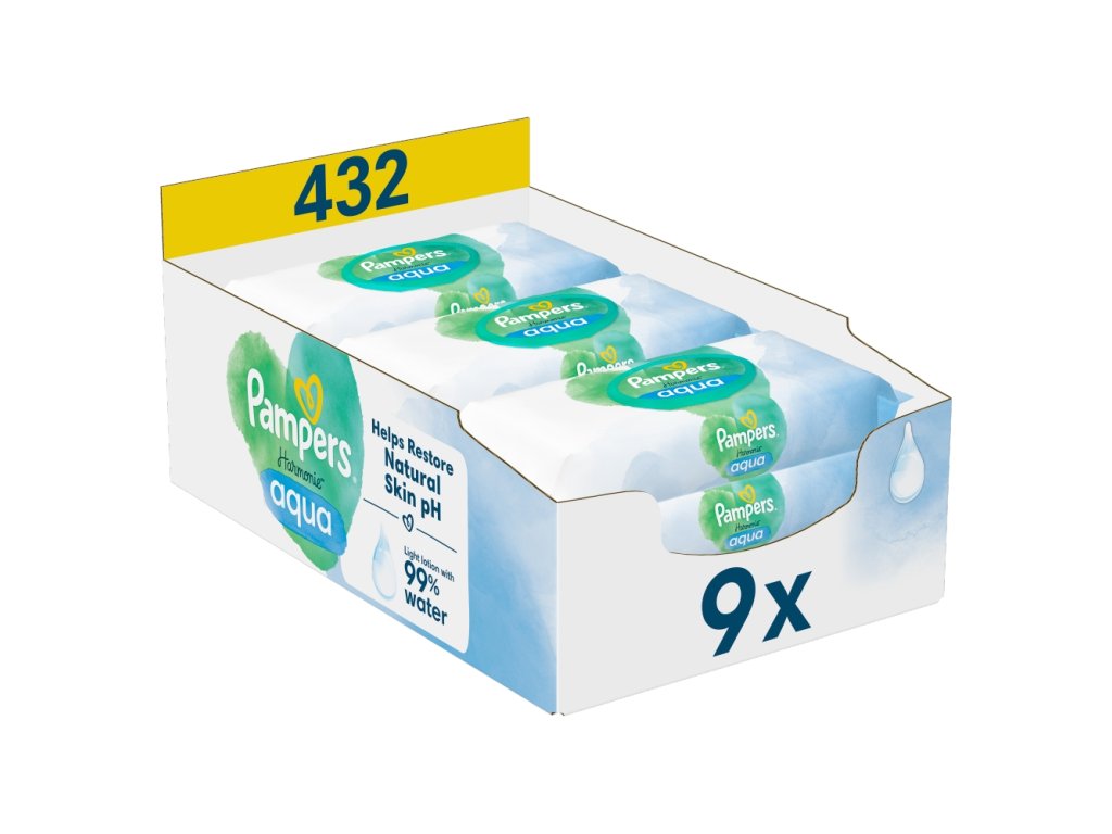 Pampers Harmonie Aqua dětské čistící ubrousky 9 x 48 ks