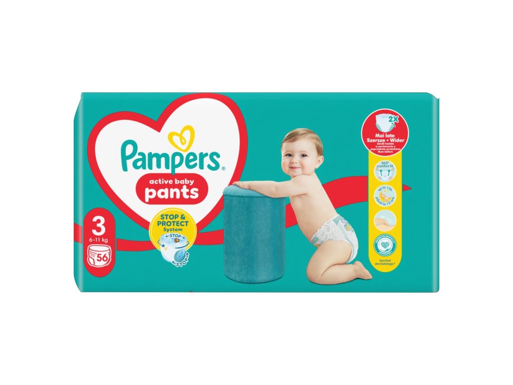 - Plenkové kalhotky Pampers Pants pro jednoduchou výměnu během dne