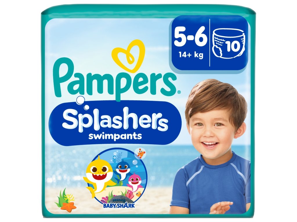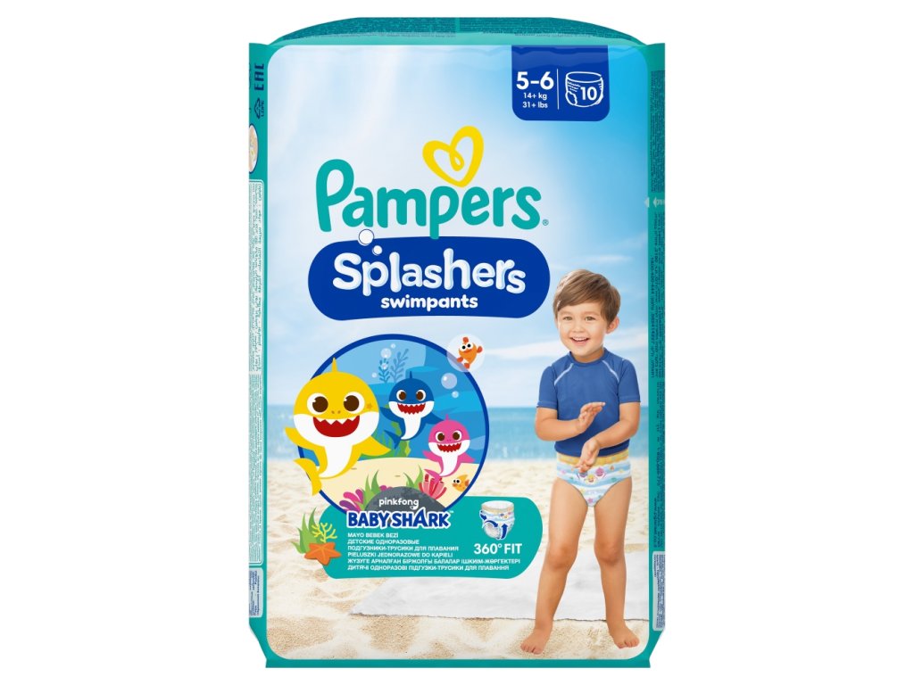 Vaše dítě může v jednorázových plenkových kalhotkách Pampers Splashers bezstarostně dovádět ve vodě. Plenkové kalhotky Pampers Splashers na rozdíl od běžných plenek ve vodě nenasáknou, takže vašemu dítěti pohodlně padnou, mokré i suché. Plenkové kalhotky Splashers mají dvojité lemy proti protečení, které poskytují ve vodě spolehlivou ochranu. Díky nim plenkové kalhotky pohodlně padnou kolem nožiček vašeho dítěte a pomohou zadržet nečistoty. Splashers jsou proto ideální plenkové kalhotky do bazénu, na pláž, do akvaparku apod. Pouze plenkové kalhotky Pampers Splashers mají po celém obvodu pružný pas, takže padnou jako plavky a snadno se oblékají i svlékají dokonce i za mokra. Boky plenkových kalhotek Pampers Splashers se dají snadno roztrhnout pro snadné svlékání bez nepořádku. Jsou potištěné obrázky na téma plavání, a díky tomu vypadají jako opravdové plavky. Díky Pampers Splashers si v bazénu užijete ještě víc legrace.