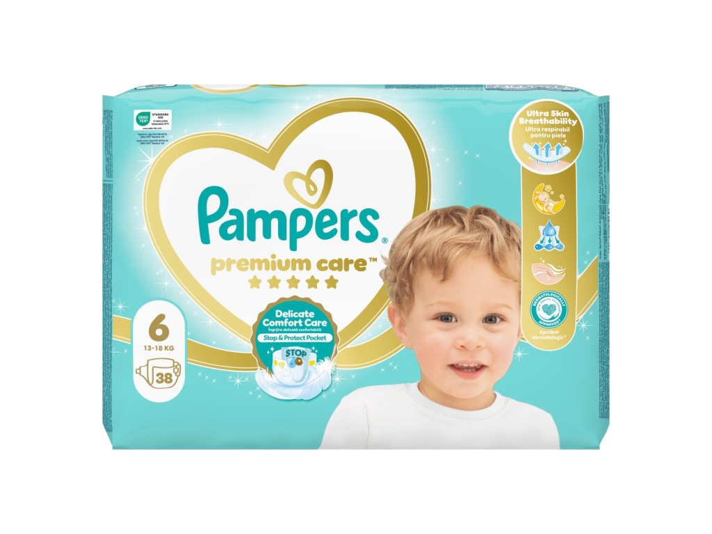 Pampers Premium Care S6 38 ks + ubrousky Pampers zdarma