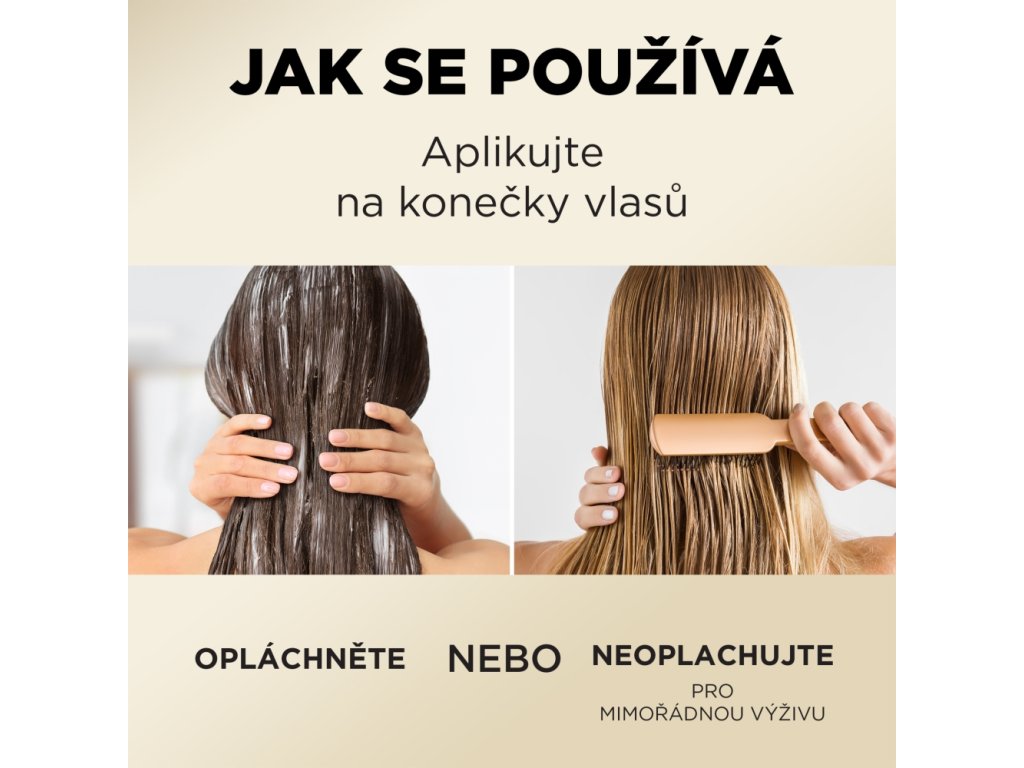 Vetřete do umytých, ručníkem vysušených vlasů, nechte chvíli působit a poté opláchněte.