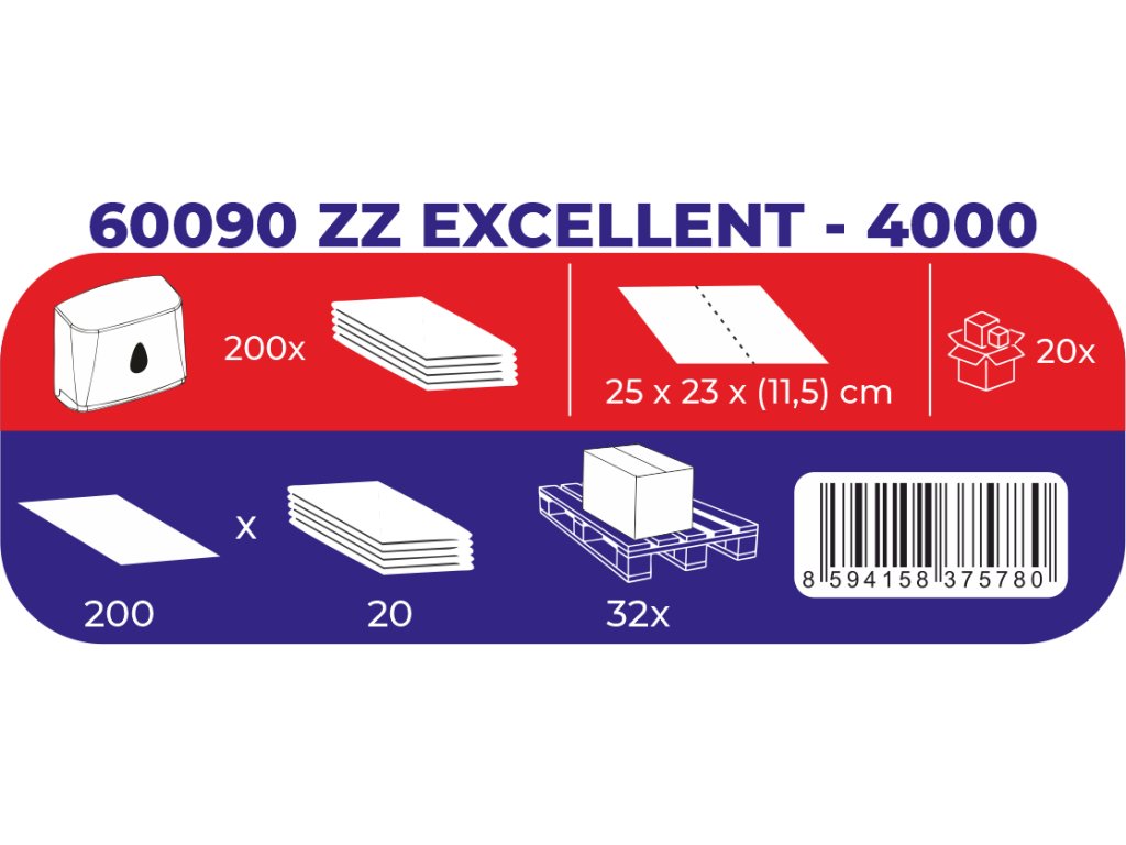 Pap.ručníky ZZ Excellent 4000 2vr, bílé, celulóza - balení po kartonu -> 20x200 listů.