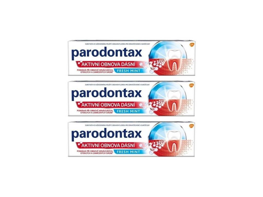 Parodontax Aktivní obnova dásní Fresh Mint je zubní pasta určená pro každodenní péči o zuby a dásně. Pomáhá bojovat proti problémům s otokem dásní, přispívá k omezení jejich krvácení a podporuje celkové zdraví ústní dutiny. Speciální složení účinně odstraňuje zubní plak – hlavní příčinu problémů s dásněmi – a zároveň zanechává příjemně svěží dech.
