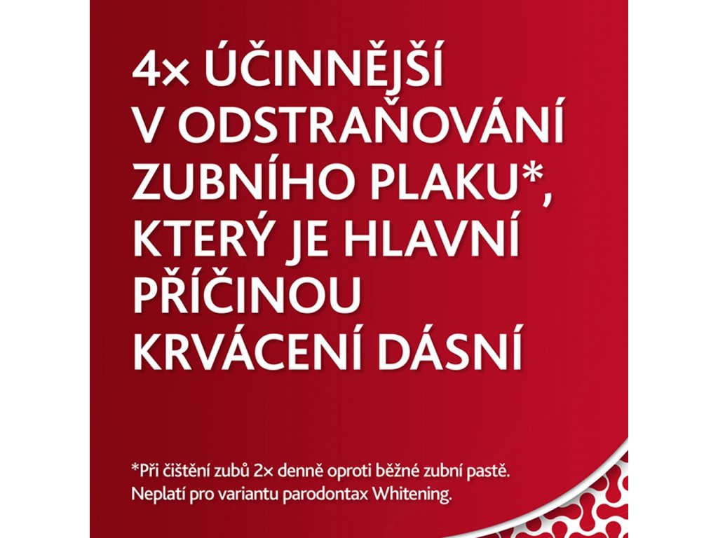Bylinná zubní pasta Parodontax představuje účinnou pomoc při krvácivosti, zánětu dásní a parodontitidě. Je vhodná jako součást zvýšené péče o zuby a dásně v těhotenství. Parodontax obsahuje unikátní kombinaci výtažků ze 6 léčivých bylin, Hydrogenuhličitan sodný a Fluorid sodný.