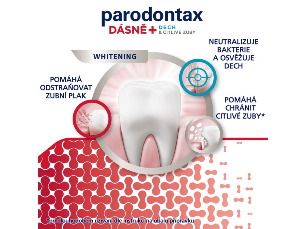 Parodontax dásně, dech a citlivé zuby nebojuje pouze s problémy dásněmi, ale zaměřuje se také na zápach z úst a na citlivost zubů, které mohou být vyvolané problémy s dásněmi.