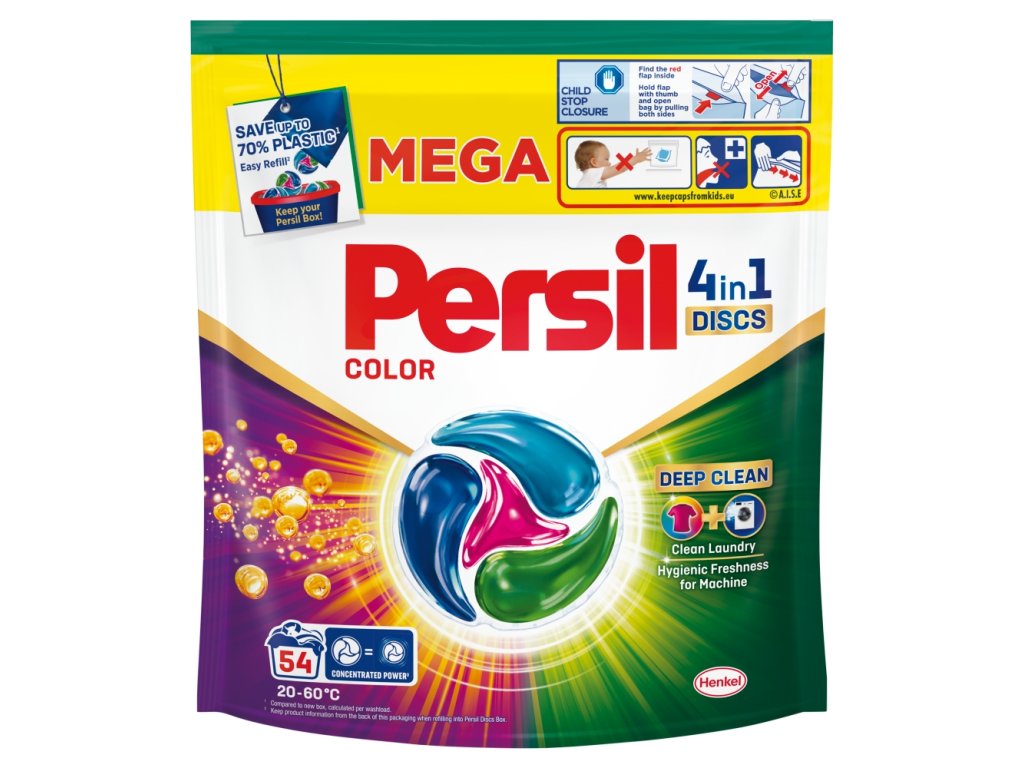 Složení těchto pracích kapslí pro barevné prádlo je navrženo tak, aby udrželo barvy zářivé a poradilo si i s těmi nejodolnějšími skvrnami. Kapsle jsou účinné i při nízkých teplotách (20 °C), díky čemuž můžete ušetřit za energie. Prací kapsle Discs 4 v 1 Color Deep Clean od značky Persil jsou šetrné i k planetě, složení obsahuje 92 % biologicky odbouratelných složek* a je vyráběno ve 100 % recyklovatelném obalu.