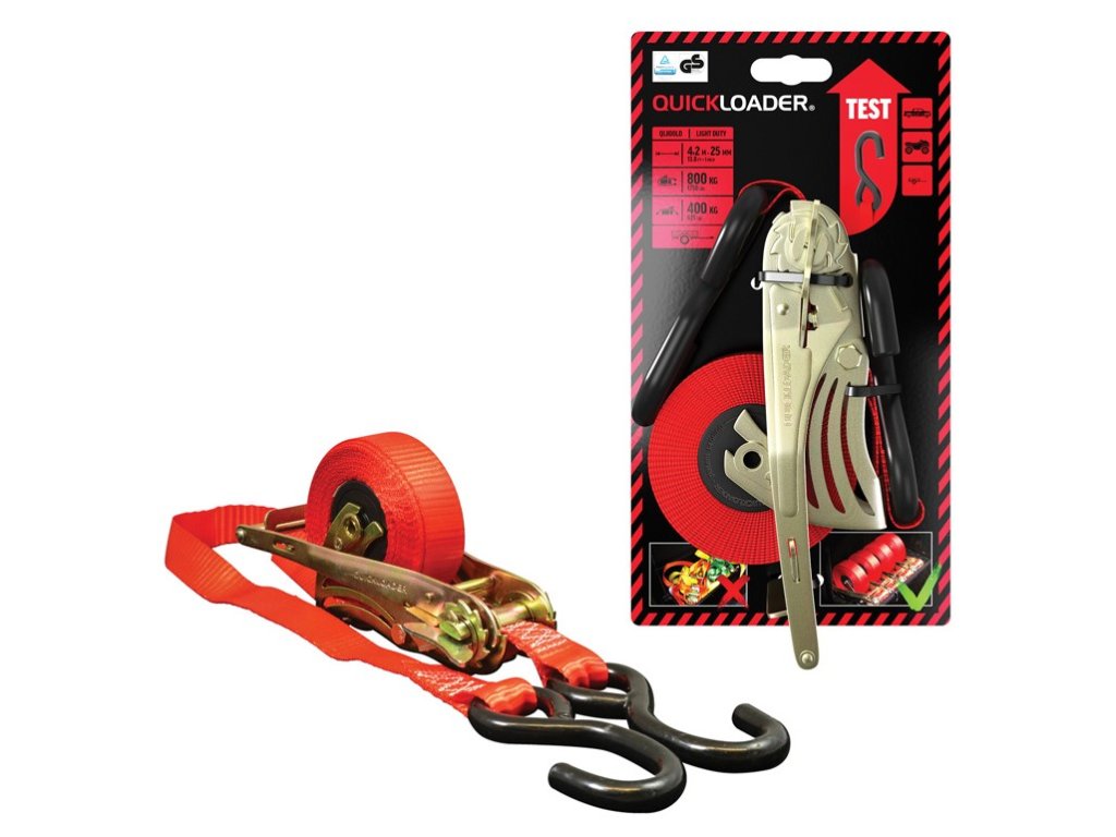 Tento praktický zajišťovací systém značky QUICKLOADER® se skvěle hodí všude tam, kde je potřeba bezpečně upevnit náklad – ať už jde o přepravu vybavení, materiálů nebo stahování. S nosností až 800 kg a délkou 4,2 m (nastavitelnou v rozmezí 0,7 až 3,5 m). Díky samonavíjecímu mechanismu je manipulace mimořádně pohodlná – pás se nezamotává, je vždy připraven k použití a odolává prachu, vlhkosti i písku. Všechny kovové části jsou ošetřeny opískovaným povrchem, který výrazně prodlužuje životnost a chrání proti korozi i opotřebení. Ergonomická rukojeť zajišťuje pohodlné napínání s minimálním úsilím, zatímco uvolňovací křidélko umožňuje okamžité a snadné odepnutí – bez nutnosti použít nástroje. Součástí systému jsou háčky s ochranným gumovým potahem, které chrání náklad před poškozením, a také univerzální „D“ kroužky, které umožňují bezpečné uchycení i tam, kde běžné možnosti nestačí.Doplňkové parametry