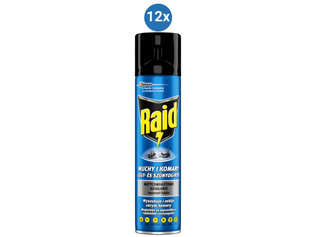 Raid sprej proti létajícímu hmyzu, proti komárům a mouchám, 12x400ml