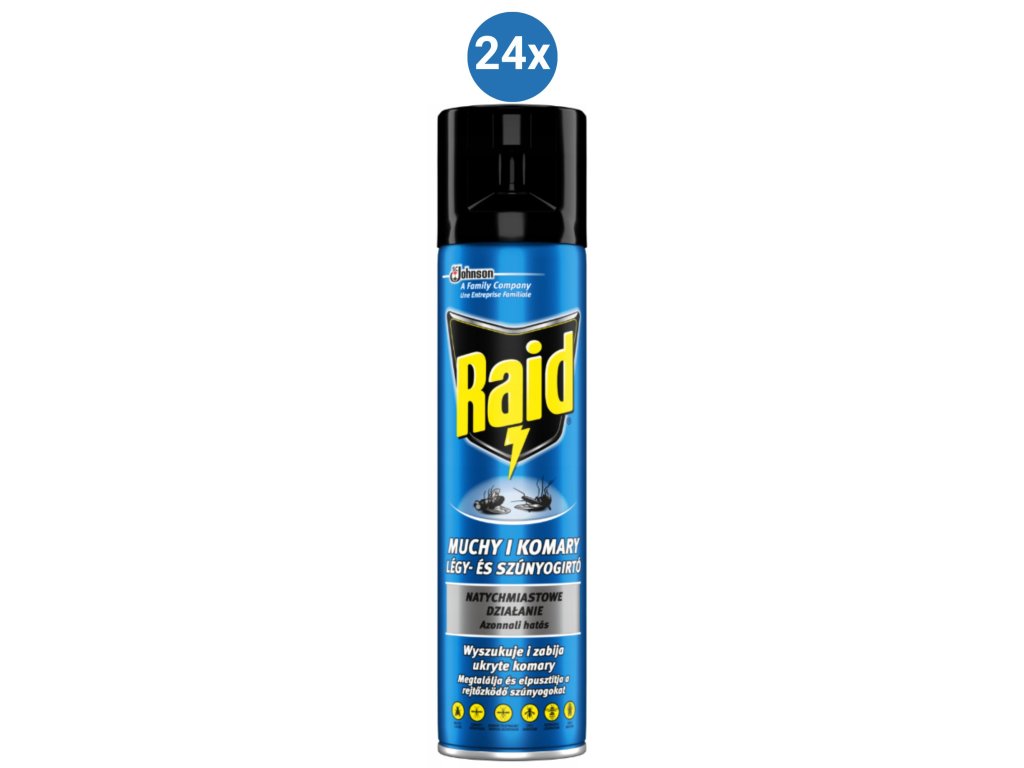 Raid aerosol proti létajícímu hmyzu je účinný insekticidní sprej určený k rychlému hubení komárů, much, vos, sršní, molů a dalšího obtížného hmyzu. Díky speciálnímu složení působí okamžitě po aplikaci a lze jej použít jak v interiéru, tak i venku.