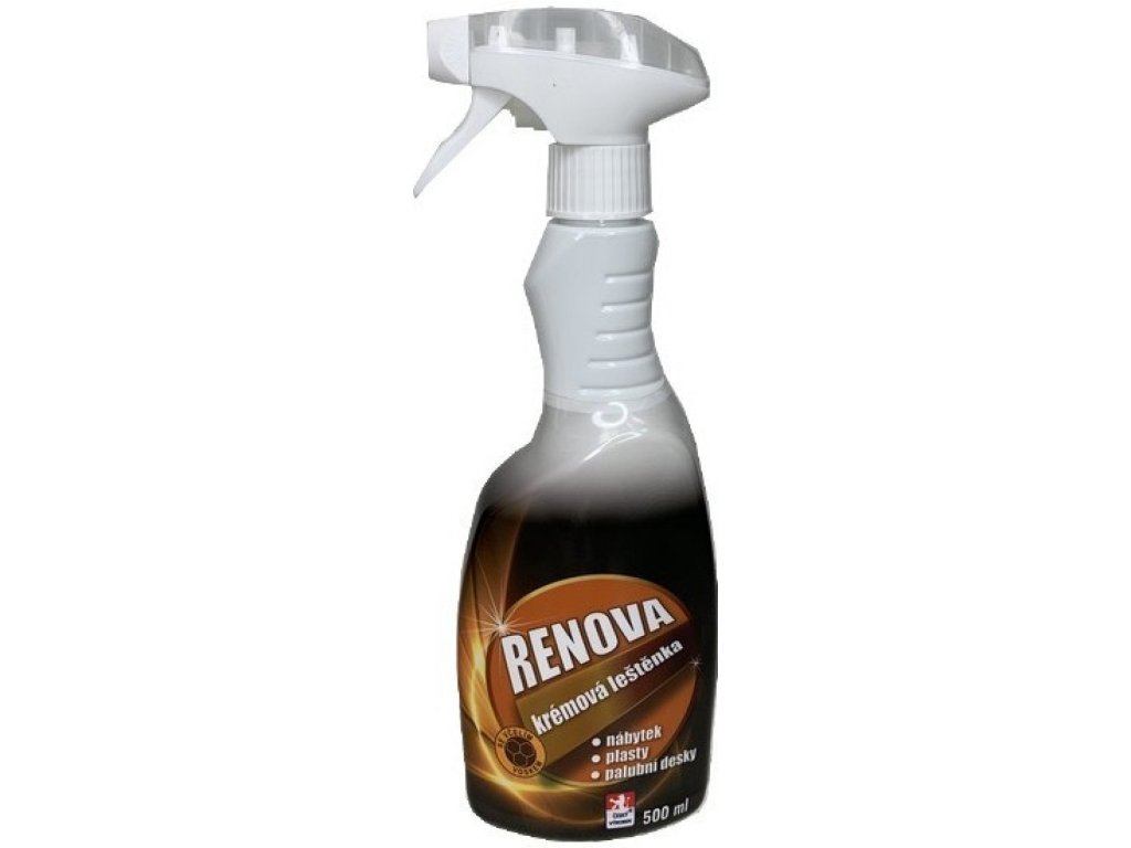 Renova krémová leštěnka vhodná k ošetření a regeneraci všech druhů nábytku, plastových povrchů, včetně palubních desek aut. Obsahuje emulzi na bázi včelího vosku, ke zlepšení povrchové ochrany proti nečistotám a vodě. Na povrchu vytvoří ochranný film a jeho vzhled oživí. Usnadňuje následnou péči. Použití převážně do interiéru.