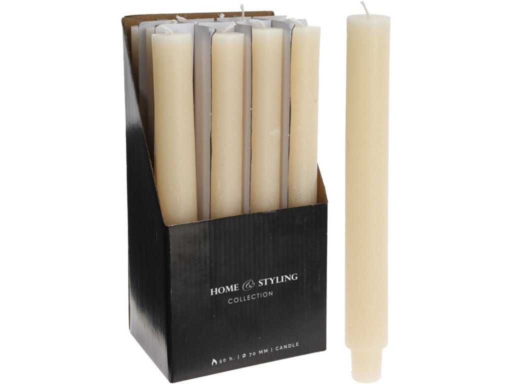 Rustikální svíčka v krémové barvě je skvělá pro vytvoření příjemné atmosféry ve vašem interiéru. Její rozměry jsou 30x250mm.Doplňkové parametry