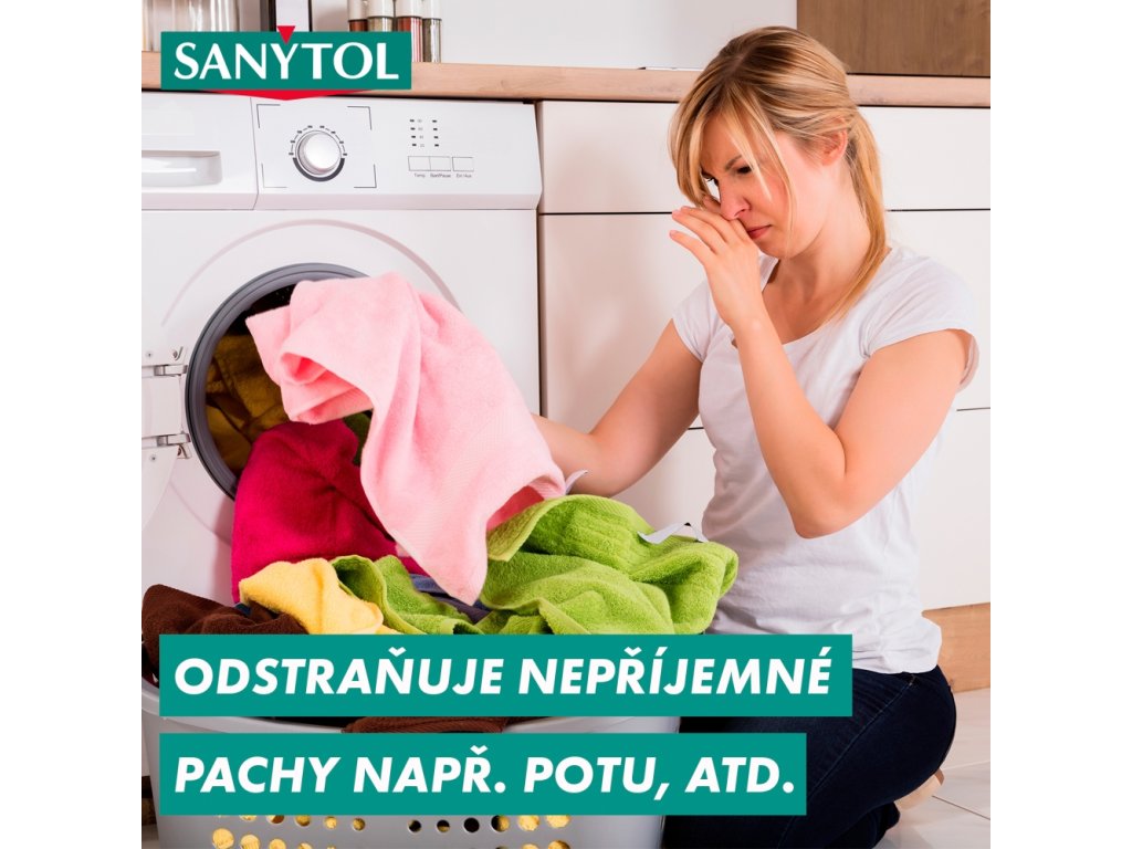 Sanytol Dezinfekce na prádlo účinně ničí 99,9 % bakterií, virů a plísní při všech teplotách praní. Tento výrobek je ideální pro sportovní oblečení, spodní prádlo, bytový textil (ručníky, utěrky, podložky), prádlo nemocných osob i textilie v kontaktu se zvířaty. Perfektně odstraňuje nepříjemné zápachy a zanechává svěží vůni bílých květů.