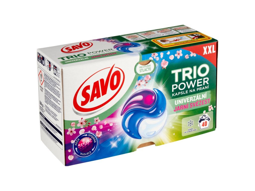Hlavní vlastnosti kapslí na praní SAVO Trio Power Universal Jarní svěžest 40 ks Jen ta nejlepší péče o vaše prádlo Kapsle na praní SAVO jsou vytvořené na všechny typy prádla Skvěle vyperou všechny barvy prádla Velké skvrny nemusíte před praním čistit ani namáčet, kapsle SAVO si s nimi bez problémů poradí Barva prádla časem nezešedne V balení kapslí SAVO je 40 ks Výrobce tohoto produktu pochází z Anglie S...