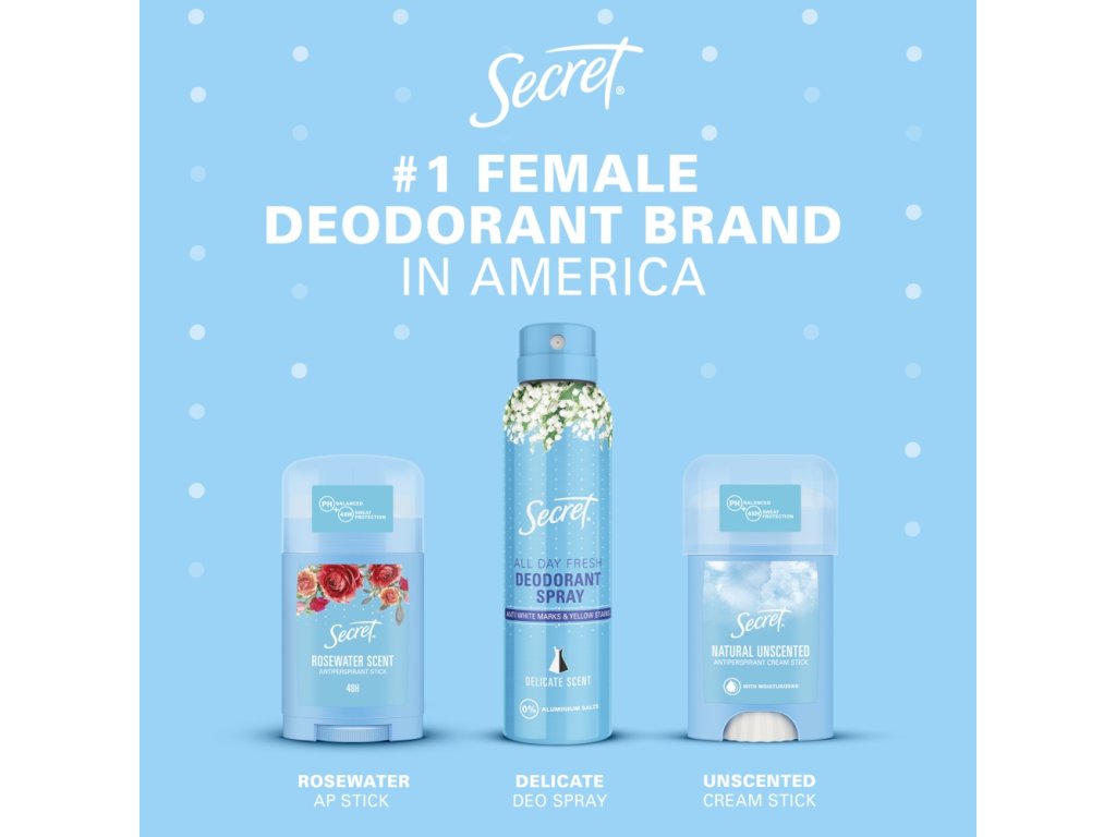 Antiperspirant Secret Delicate optimálně absorbuje pot a neutralizuje zápach. Dodá vám každý den pocit svěžesti a čistoty.