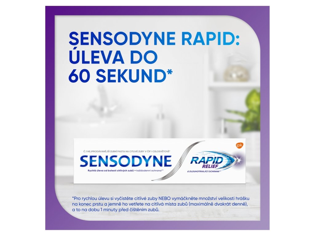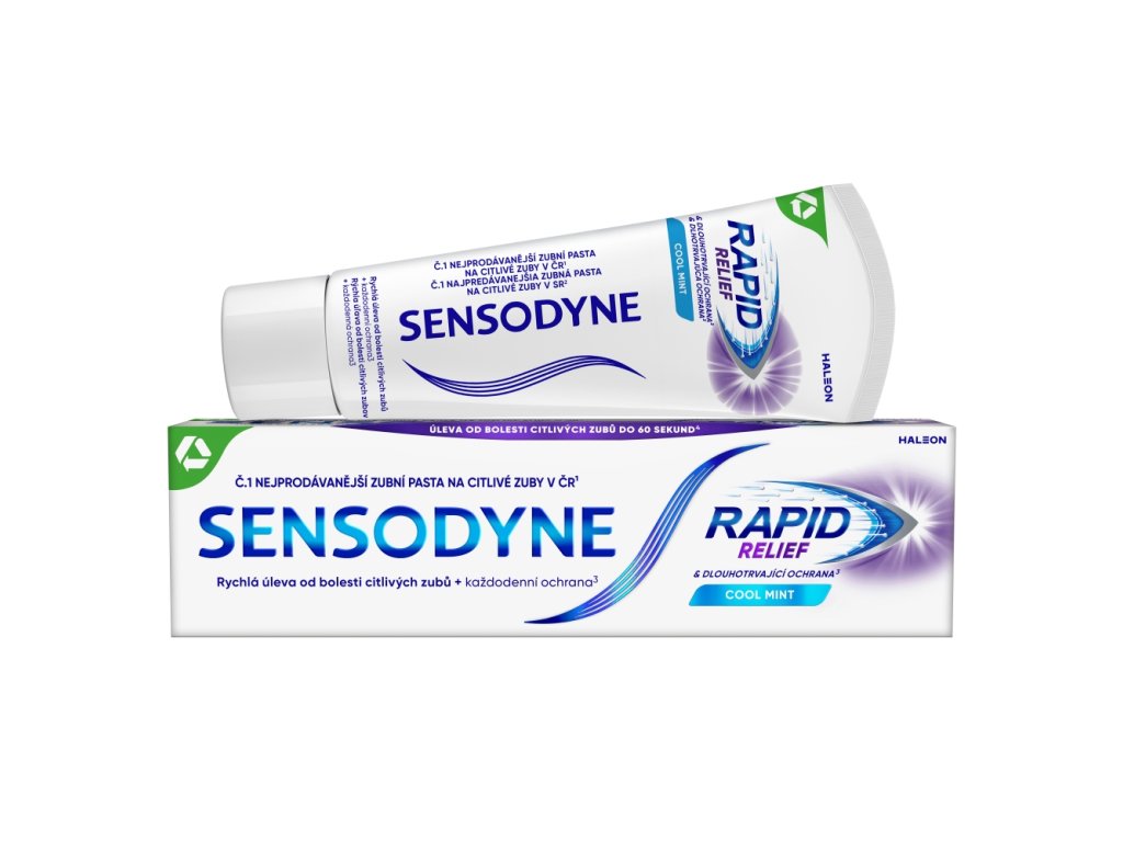 Sensodyne zubní pasta Rapid uleví od bolesti citlivých zubů do 60 sekund. Zubní pasta Sensodyne Rapid s rychlým nástupem účinku přináší klinicky ověřenou úlevu od bolesti citlivých zubů. Fluorid cínatý obnovuje ochrannou vrstvu na obnaženém dentinu.
