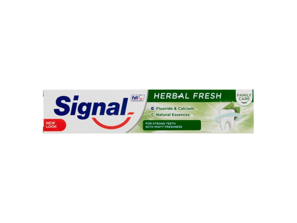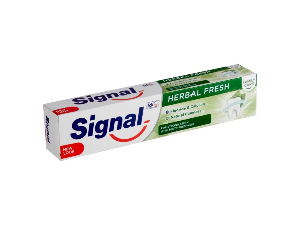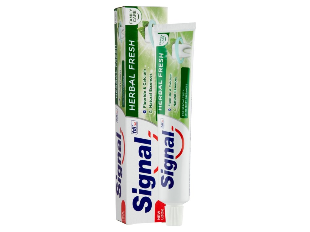 Dlouhotrvajcí svěžest. Zubní pasta Signal Family Herbal Fresh obsahuje bohatou směs přírodních výtažků, mezi kterými jsou máta, šalvěj, myrha a eukalyptus, známé pro jejich osvěžující vlastnosti. Aktivně bojuje proti nepříjemnému dechu a zanechává v ústech dlouhotrvající pocit svěžesti. Silnější zuby chráněné proti zubnímu kazu. Signal Family Herbal Fresh pomáhá doplňovat zubům fluor a vápník, nejdůležitější prvky pro udržení silných zubů.