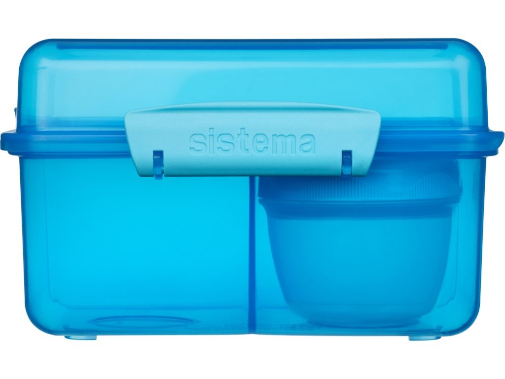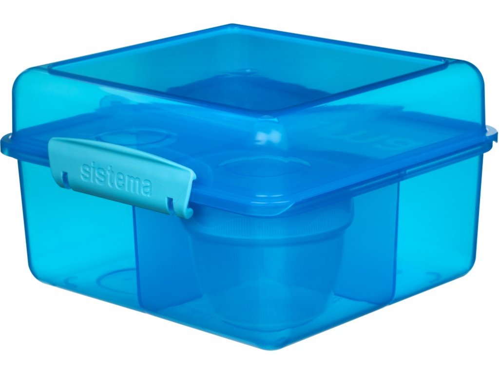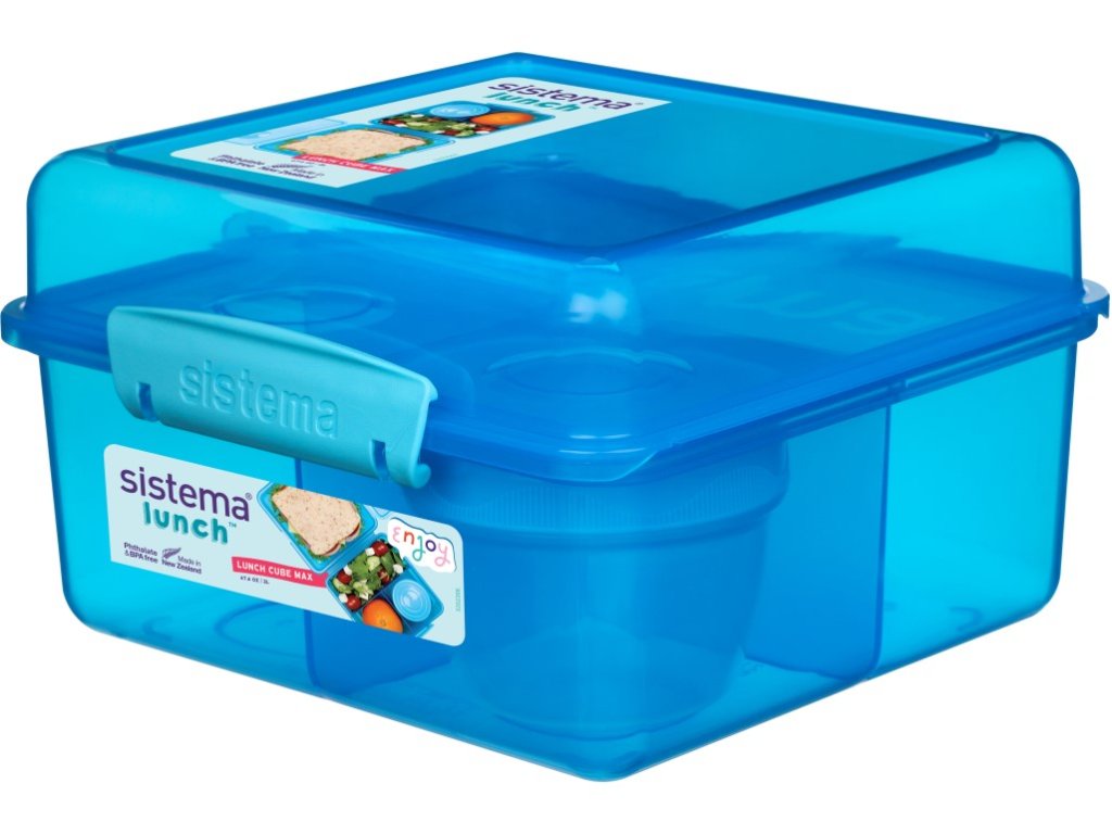 Sistema Dělený svačinový box Lunch Cube Max s nádobou na jogurt s dvojitým víčkem 2 l, modrá