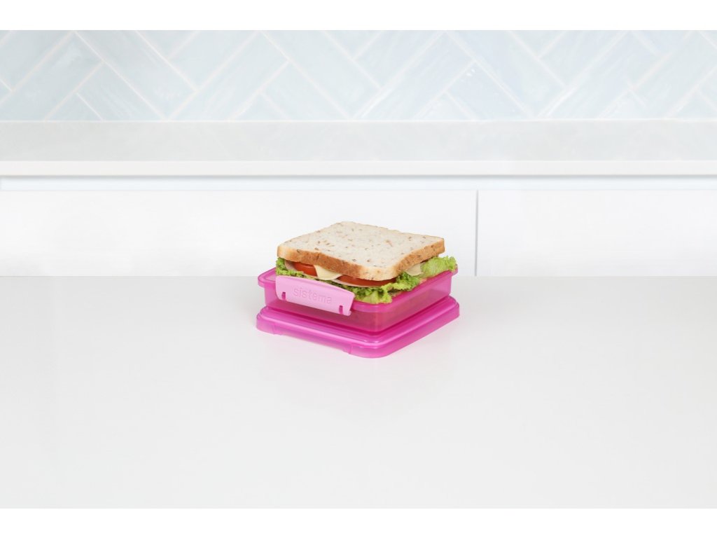 Díky inovativnímu designu s modulárním stohovatelným tvarem, snadno uzavíratelnými klipy a pružným těsněním, tato krabička umožňuje udržet sendvič čerstvý a chráněný až do doby konzumace. Výhody: • Ideální pro děti • Modulární stohovatelný tvar • Snadné uzamykání: Klip Sistema® a pružné těsněníDoplňkové parametry