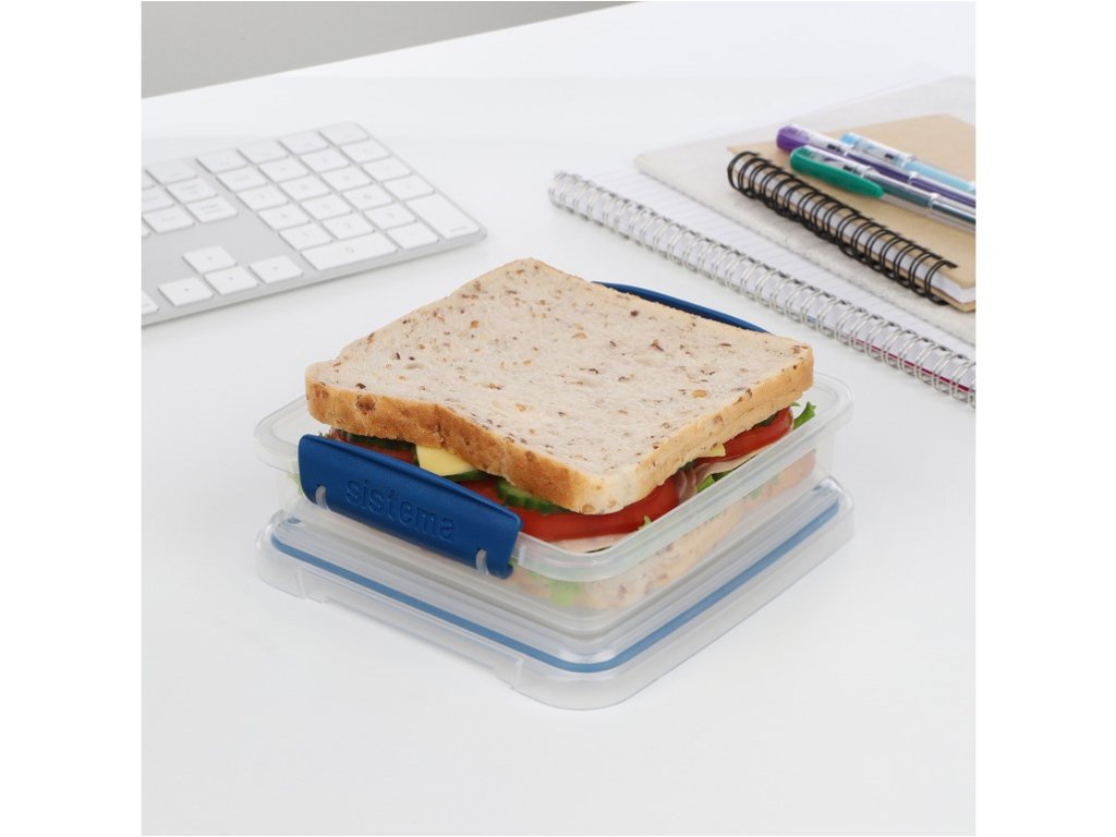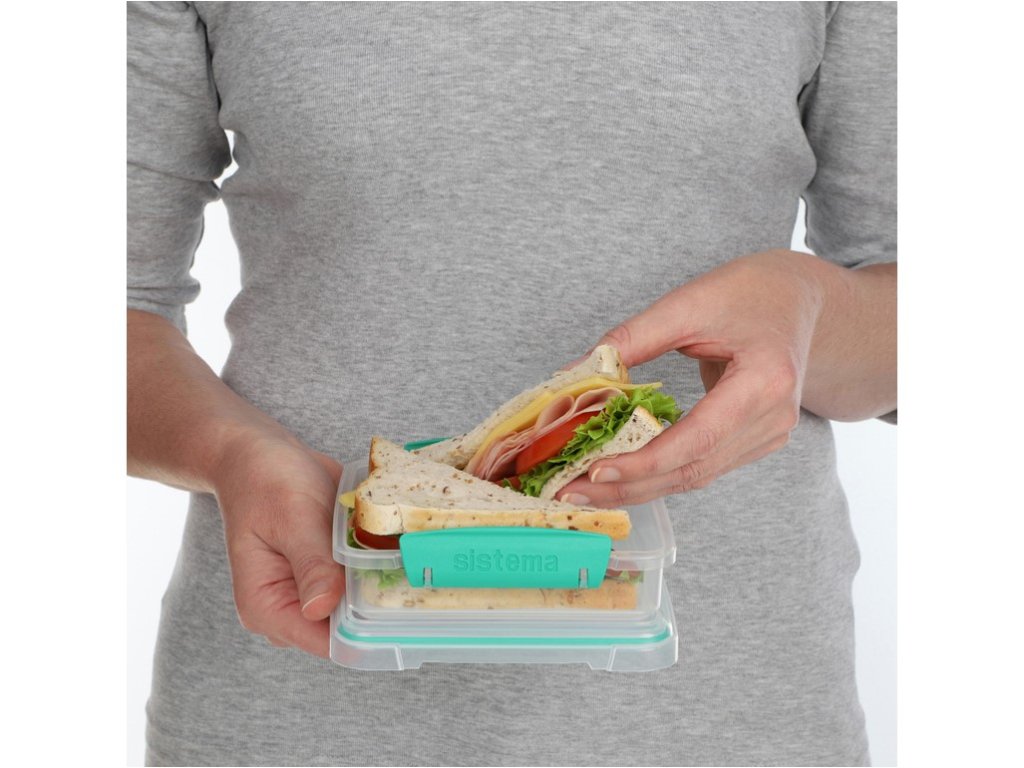 Krabička se díky své kompaktní velikosti a nízké hmotnosti snadno přenáší v batohu, tašce nebo kabelce.Krabička má objem 450 ml, takže se do ní vejde i velký sendvič, tortilla, wrap, nebo pita chleba. Můžete do ní ale uložit i jiné druhy potravin. Výhody: Snadné uzamykání: Klip Sistema® a pružné těsnění Prostorná a praktická Modulární designDoplňkové parametry