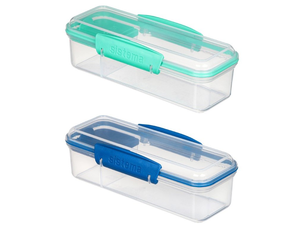 Sistema Krabička na svačinu s oddělenou přihrádkou 410 ml je praktickým řešením se dvěma oddělenými prostory pro přípravu chutných svačin a obědů nejen na cesty.Zároveň pomáháte omezit používání plastových sáčků a fólií. Krabička je vyrobena z odolného plastu a má snadno uzamykatelné klipy a flexibilní těsnění pro udržení čerstvosti. Výhody: Vhodné pro děti Klip pro snadné zamykání a sklopné víko Dva oddíly pro udržení svačin oddělenýchDoplňkové parametry