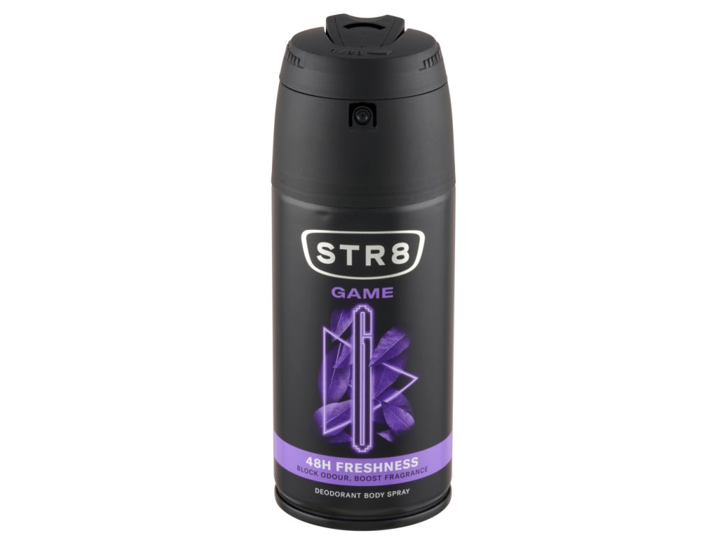 Pánský deodorant ve spreji STR8 Game. Svěží ovocná vůně s dřevitými tóny a zklidňujícími účinky levandule. Svěží a mladistvá vůně.
