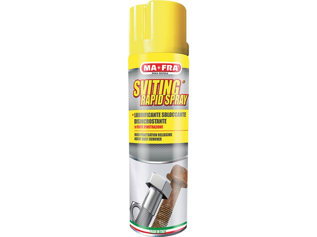 MA-FRA - SVITING RAPID uvolňovač odrezovač - sprej - Přípravek se silnou penetrační schopností odstraňuje oxidaci. Vysoká mazací schopnost. Odstraňuje rez.Doplňkové parametry