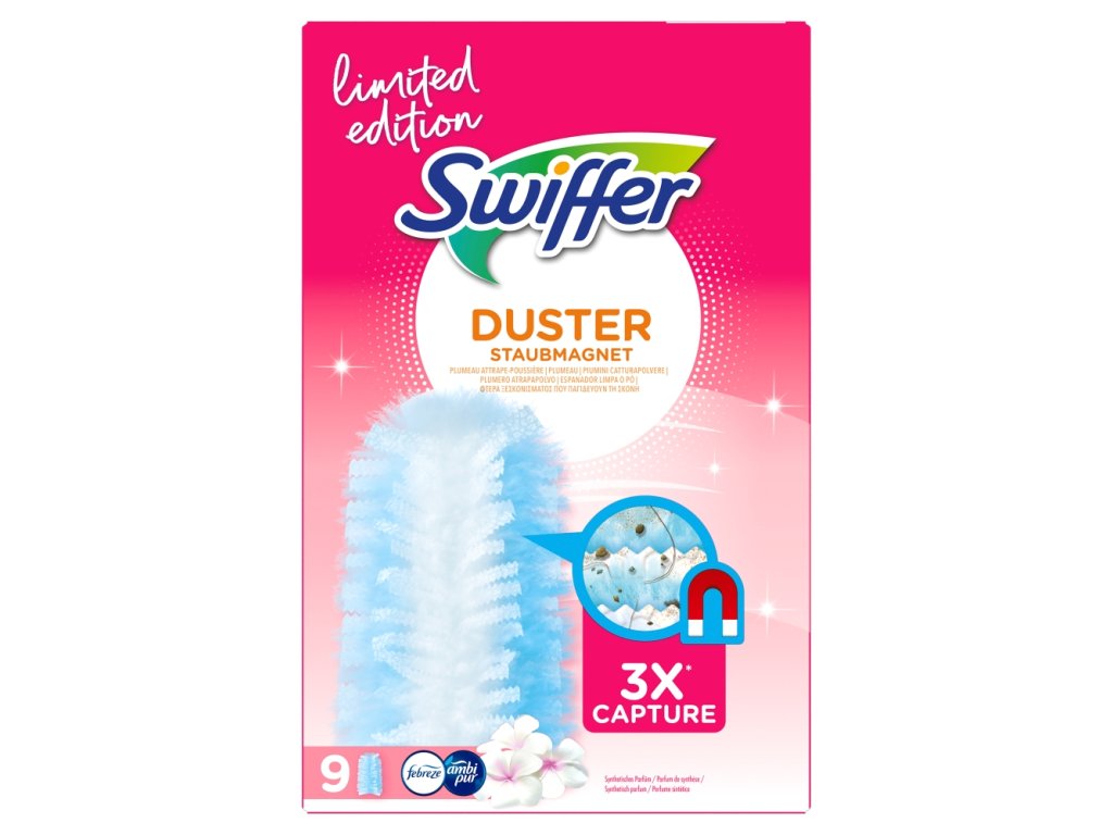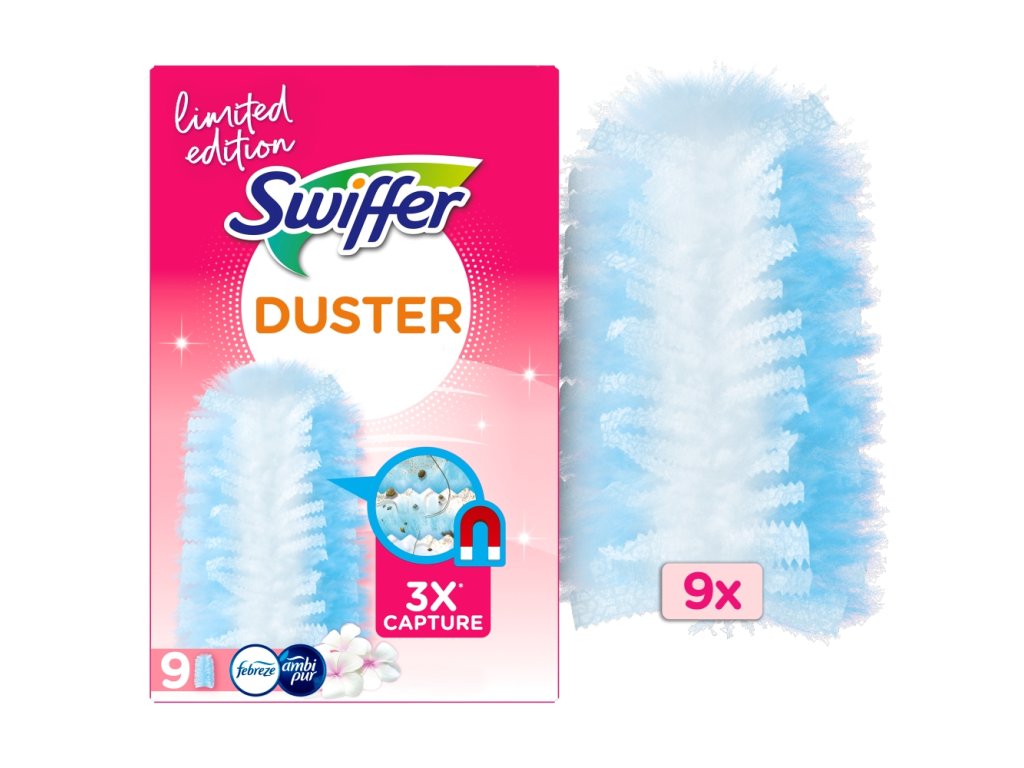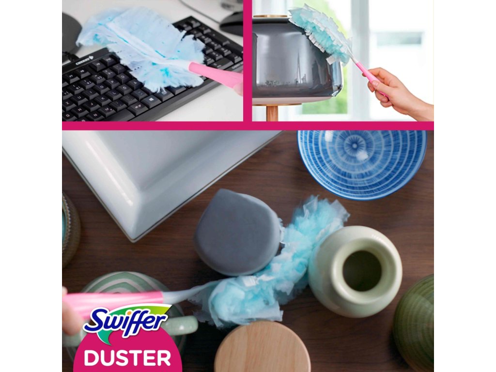 Jsou obzvláště vhodné na odstraňování chlupů z neustále línajících domácích mazlíčků a pro osoby trpící alergií na prach. Fungují tak dobře, že vás možná začne bavit utírat prach. Prachovky Swiffer používejte spolu s násadou Swiffer®.