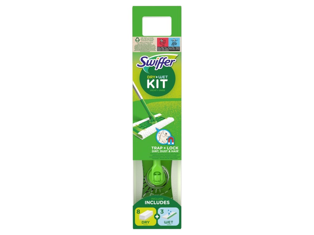 Swiffer startovací sada Sweeper obsahuje 8 pevných prachovek, které zachycují 3krát více nečistot, prachu, vlasů a chlupů než tradiční smetáky. Můžete je také používat jako doplněk k vysavači pro zachycení nevysátého jemného prachu, nebo jako trik pro rychlé poklizení mezi důkladnými úklidy.