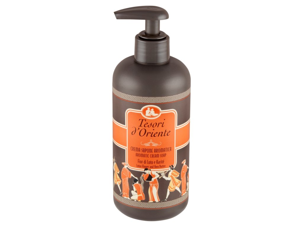 Italské krémové mýdlo na ruce od oblíbené značky Tesori d Oriente, které je ve skvělém designovém obale. Krémová mýdla značky Tesori vynikají svou dokonale kombinovanou kompozicí pafémů, které na pokožce dlouho vydrží a zároveň ji hydratují. Značka Tesori došla až tak daleko, že je možné si vybrat tuhé mýdlo na ruce, sprchový gel i aviváž od jedné vůně.