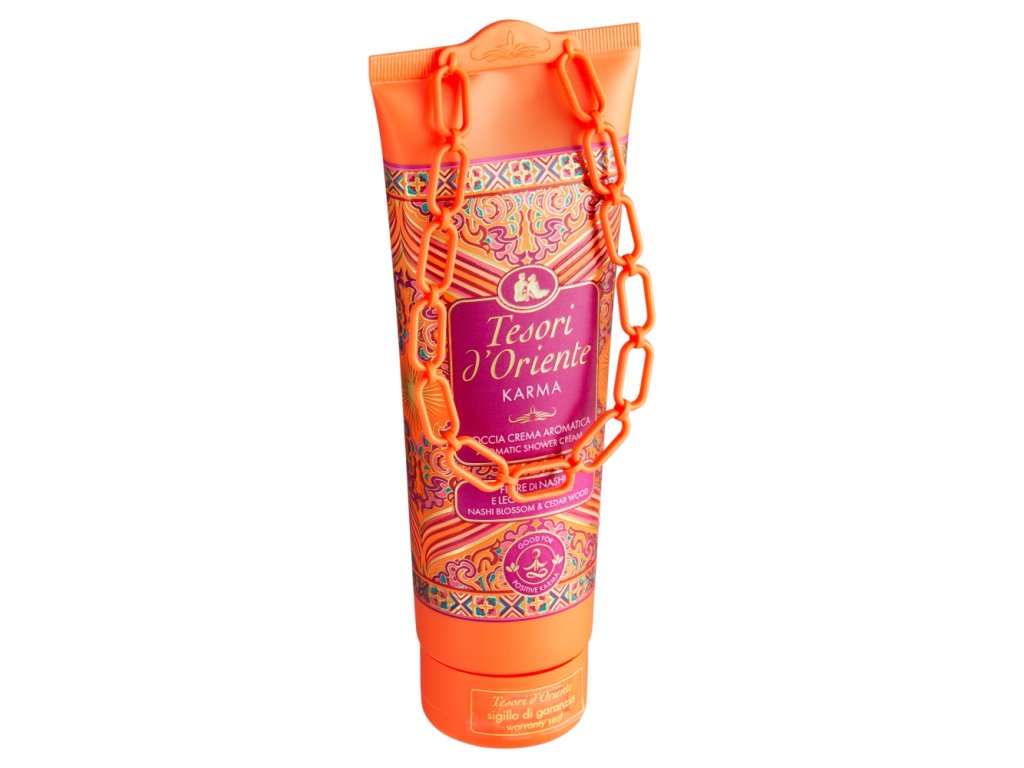 Tesori d´Oriente Karma je krémový sprchový gel inspirován starověkými hinduistickými tradicemi. Energické akordy citronu a bergamotu, veselé květinové tóny květů nashi (čínská hruška) a zklidňující tóny cedrového dřeva harmonicky čistí pokožku a hýčká Vaše smysly. Neobsahuje parabeny, silikony, minerální oleje a umělá barviva. Pomáhá udržovat optimální hydratační hladinu pokožky. Dermatologicky testováno.