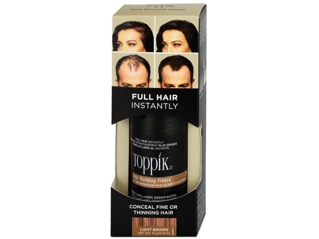 Husté vlasy během chvilky Toppik vlasová vlákna jsou určena pro lidi s jemnými, slabými, řidšími vlasy či těmi, kteří trpí alopecií. Okamžitě dodá hustotu a plnost vlasů, překryje prosvítající pokožku. Toppik je odolný vůči potu, dešti i větru. Je smývatelný šamponem. Najděte si svůj odstín. Toppik vlasová vlákna fungují díky přírodní magnetické přitažlivosti. Jsou vyrobena z přírodního keratinu, stejného, jaký se vyskytuje v lidských vlasech. Mají přírodní statický náboj, který vytváří magnetický efekt, a tudíž se váže i na ty nejjemnější prameny lidských vlasů. Odstín: světle hnědá Návod k použití: Vysušte a upravte vlasy tak, jak jste zvyklí Aplikujte Toppik vlasová vlákna na potřebná místa Jemně vlasy pročešte, aby se vlasová vlákna co nejlépe rozprostřela Vhodné pro muže i ženy. Lze kombinovat více odstínů vlasových vláken dohromady. Více na www.toppik.cz.Doplňkové parametry