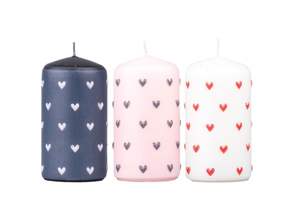 Válec Srdíčka malá, svíčka, v mixu barev 60x110 mm