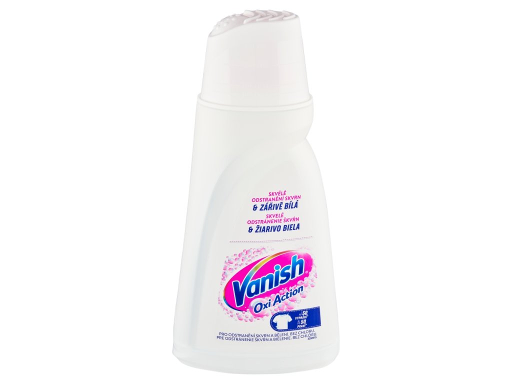Vanish Oxi Action tekutý odstraňovač skvrn na bílé prádlo představuje účinný způsob udržování bělosti bílých látek bez poskvrny a zároveň odstraní skvrny již po prvním praní