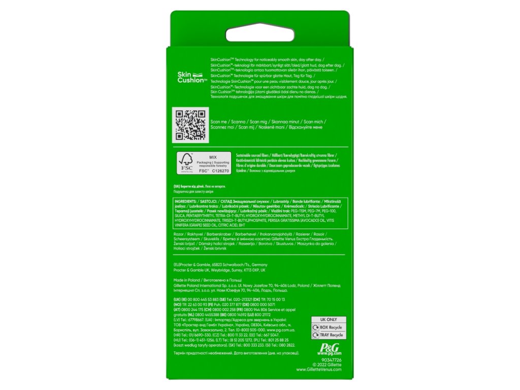 S dámským holicím strojkem Gillette Venus Extra Smooth zůstane hladké oholení pod kontrolou. Holicí hlavice mají 5 břitů, které zajišťují super hladké oholení.