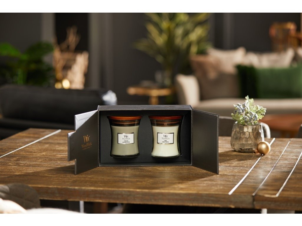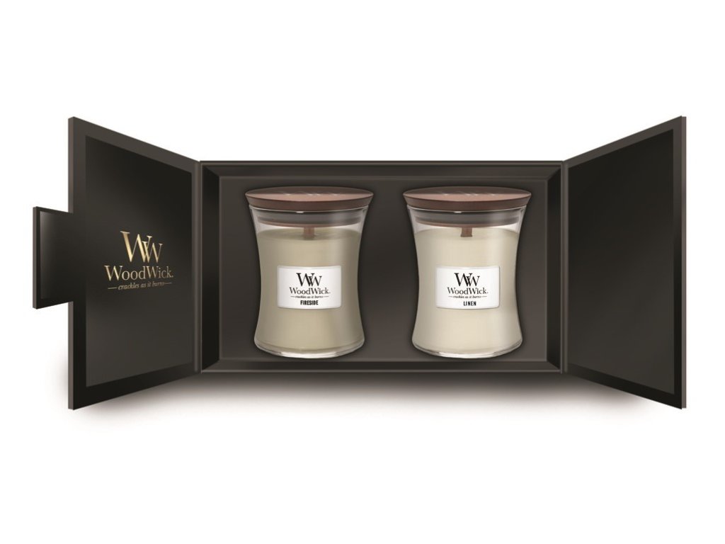 WoodWick dárkový set Fireside, Linen váza střední 2 ks