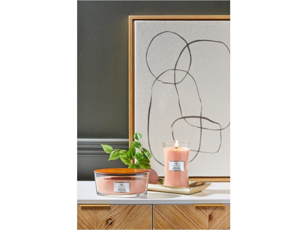 Elegantně tvarovaná velká svíčka s typickým dřevěným víčkem provoní váš domov a naplní ho jemným zvukem praskajícího knotu, který podpoří atmosféru pohodlí a útulnosti. Neboť domov je tam, kde praská oheň. Knot je vyroben z přírodního dřeva. Po vypálení využijte sklenici jako krásnou vázu či pro další dekorační účely. TIP: Rozpusťte svíčku vždy až ke kraji, nechejte jí hořet 3-4 hodiny Složení: směs prémiového parafínu a sójového vosku s vysoce koncentrovanými vůněmi zajišťuje čisté hoření bez nepříjemných zbytků. Vonné esence byly pečlivě vybrané, aby naplnily místnost dlouhotrvající vůní. Otevřený tvar svíčky zvyšuje plochu odpařování vonných esencí z voskového jezírka a zajišťuje rovnoměrný vonný zážitek. Patentovaný tvar dřevěného knotu Pluswick® Innovation vytváří uklidňující zvuk praskajícího ohně. Rozměry 10 x 18 cm.Doplňkové parametry