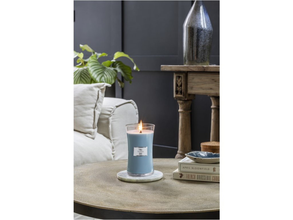 Elegantně tvarovaná velká svíčka s typickým dřevěným víčkem provoní váš domov a naplní ho jemným zvukem praskajícího knotu, který podpoří atmosféru pohodlí a útulnosti. Neboť domov je tam, kde praská oheň. Knot je vyroben z přírodního dřeva. Po vypálení využijte sklenici jako krásnou vázu či pro další dekorační účely. TIP: Rozpusťte svíčku vždy až ke kraji, nechejte jí hořet 3-4 hodiny Složení: směs prémiového parafínu a sójového vosku s vysoce koncentrovanými vůněmi zajišťuje čisté hoření bez nepříjemných zbytků. Vonné esence byly pečlivě vybrané, aby naplnily místnost dlouhotrvající vůní. Otevřený tvar svíčky zvyšuje plochu odpařování vonných esencí z voskového jezírka a zajišťuje rovnoměrný vonný zážitek. Patentovaný tvar dřevěného knotu Pluswick® Innovation vytváří uklidňující zvuk praskajícího ohně. Rozměry 10 x 18 cm.Doplňkové parametry