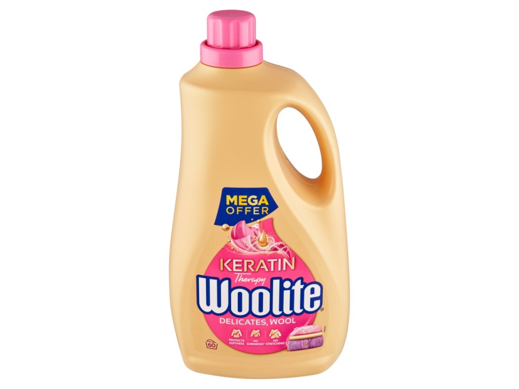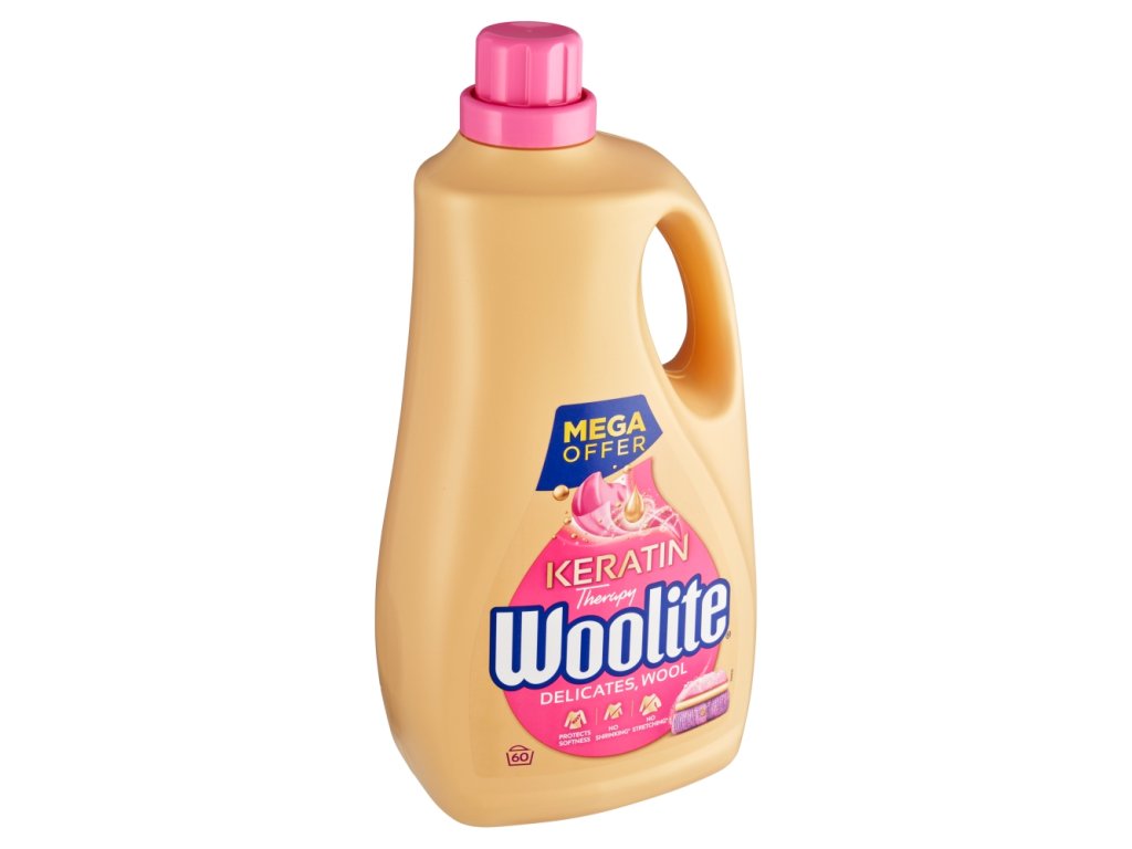 Woolite na jemné a vlněné prádlo s keratinem, který obnovuje pevnost vláken. Výsledkem je čisté a zregenerované prádlo po každém vyprání. Woolite Delicate je určený speciálně na jemné prádlo a vlněné oblečení. Díky svému složení chrání textilie před ztrátou tvaru a vytvářením žmolků. Prádlo zůstává měkké po každém vyprání.