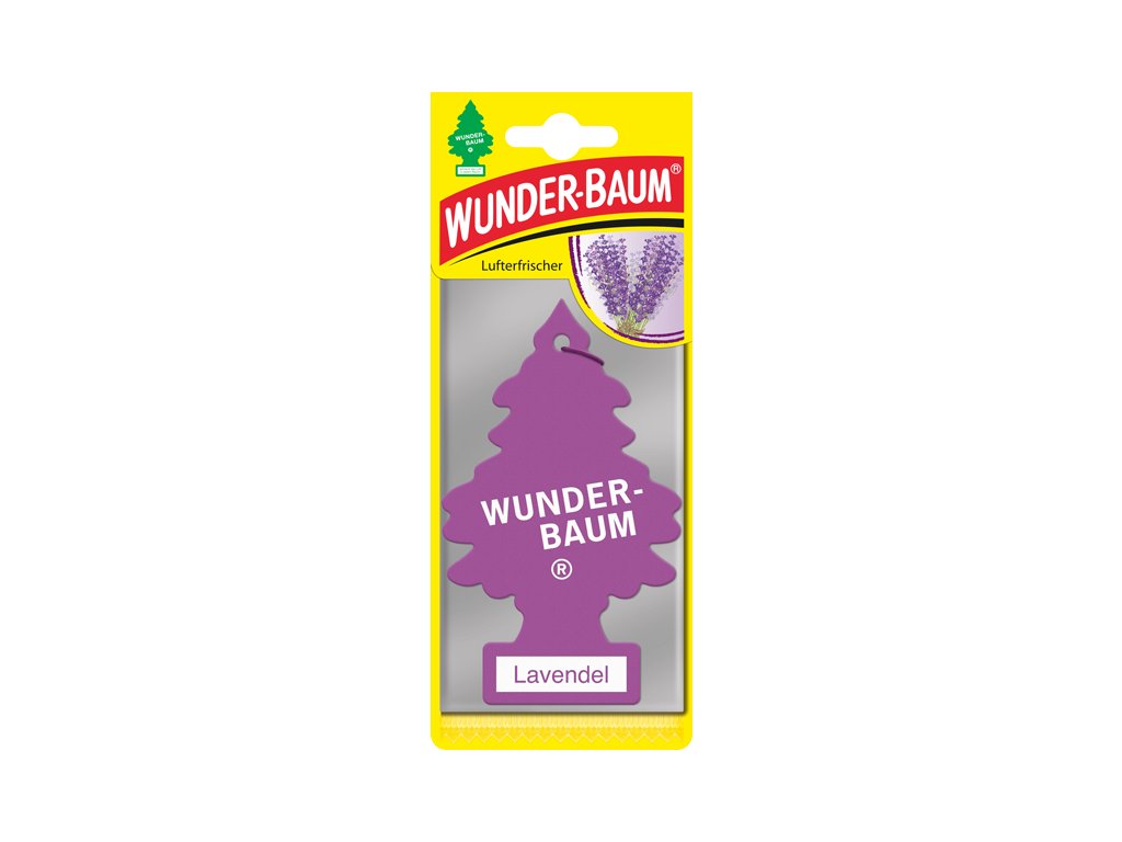 WUNDER-BAUM - Levandule osvěžovač stromeček - Ikonický a unikátní osvěžovač ve tvaru stromečku provoní interiér. Příjemná dlouhotrvající vůně. K zavěšení.Doplňkové parametry